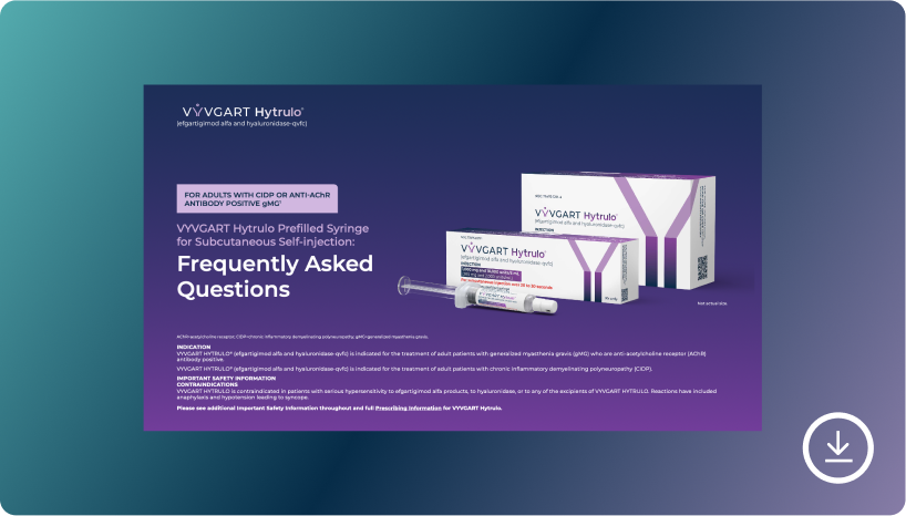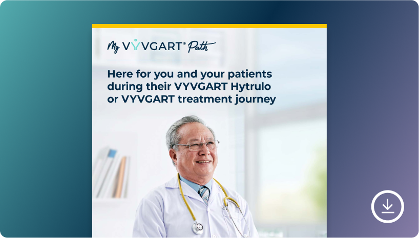 Contact My VYVGART Path at 1-833-697-2841 for assistance for your patients who are on VYVGART Hytrulo or VYVGART.